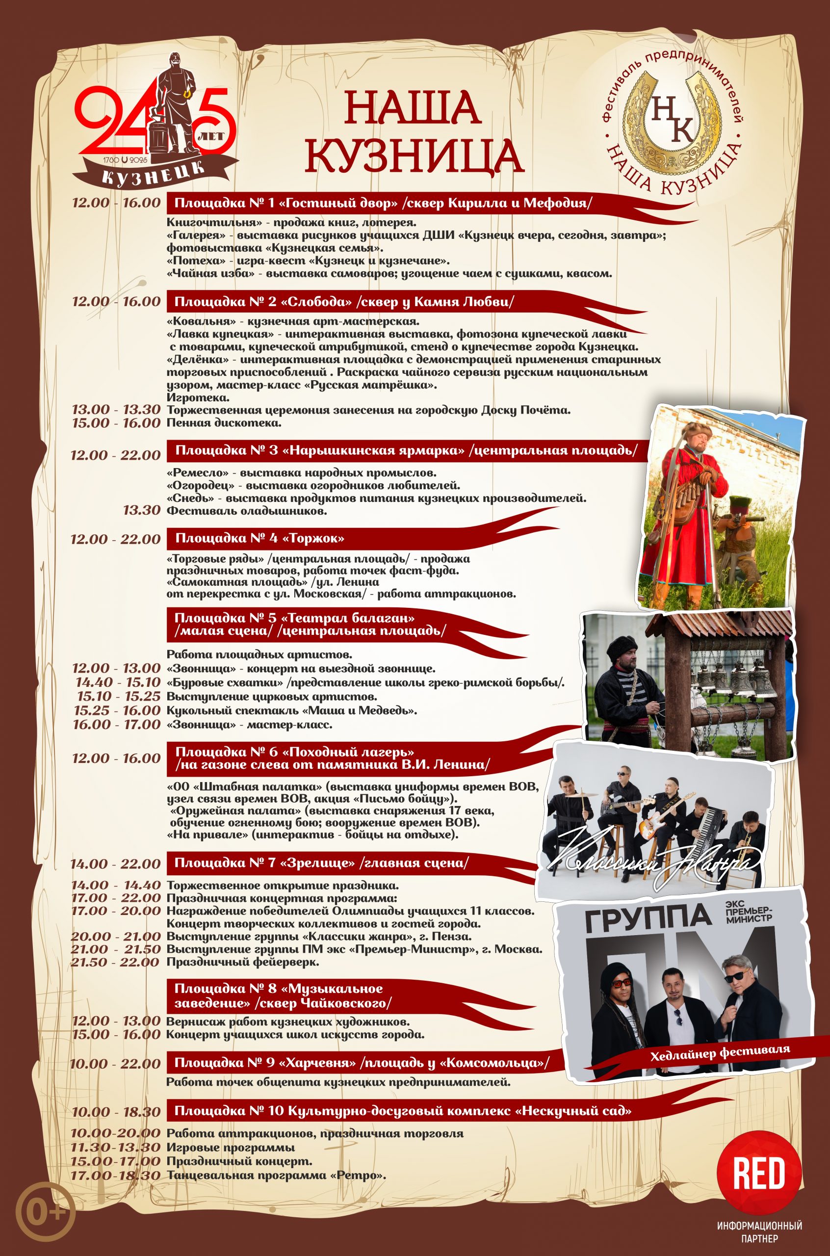 АФИША фестиваля “Наша кузница” в рамках 245-летия города Кузнецка